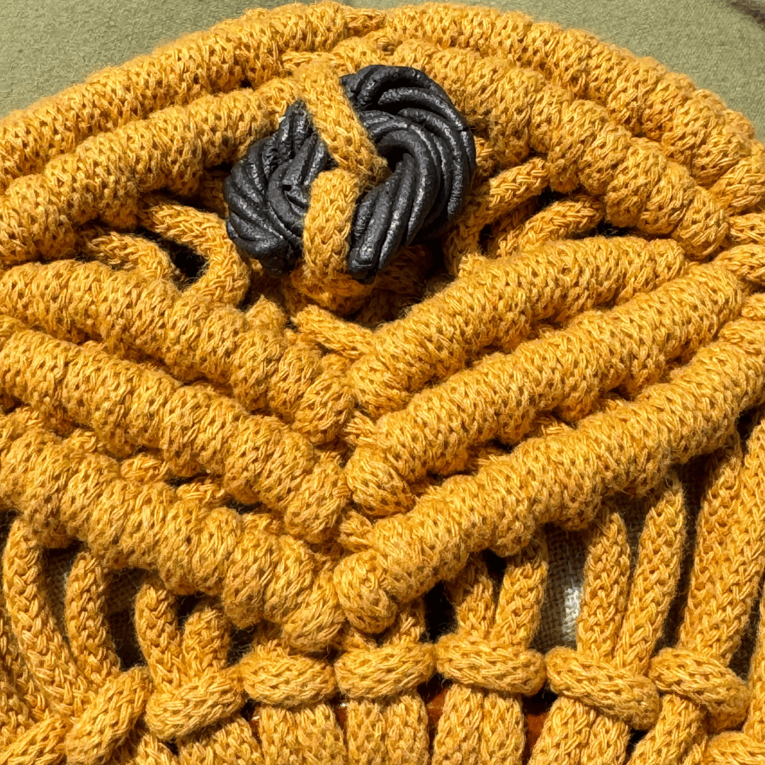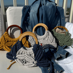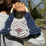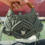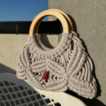 Deliziosa borsa a mano realizzata in macramè, arricchita da un inserto in ceramica che la rende unica e irripetibile.