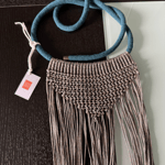 Aggiungi un tocco raffinato e naturale al tuo stile con questa collana fatta a mano, realizzata con cotone organico color pavone.