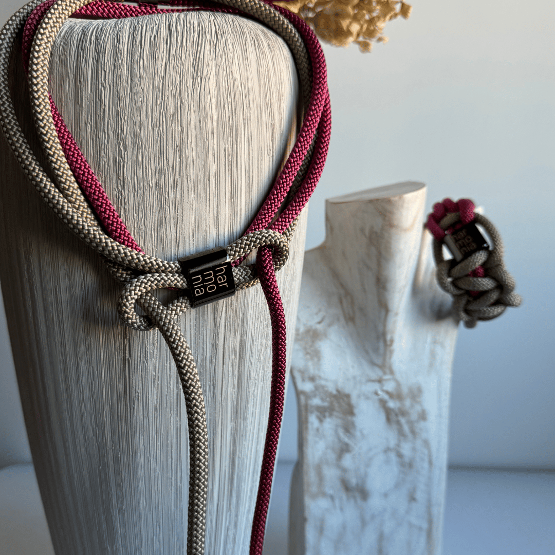 Collana in filato di corda unisce un design sofisticato a un tocco di originalità.