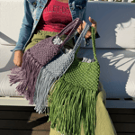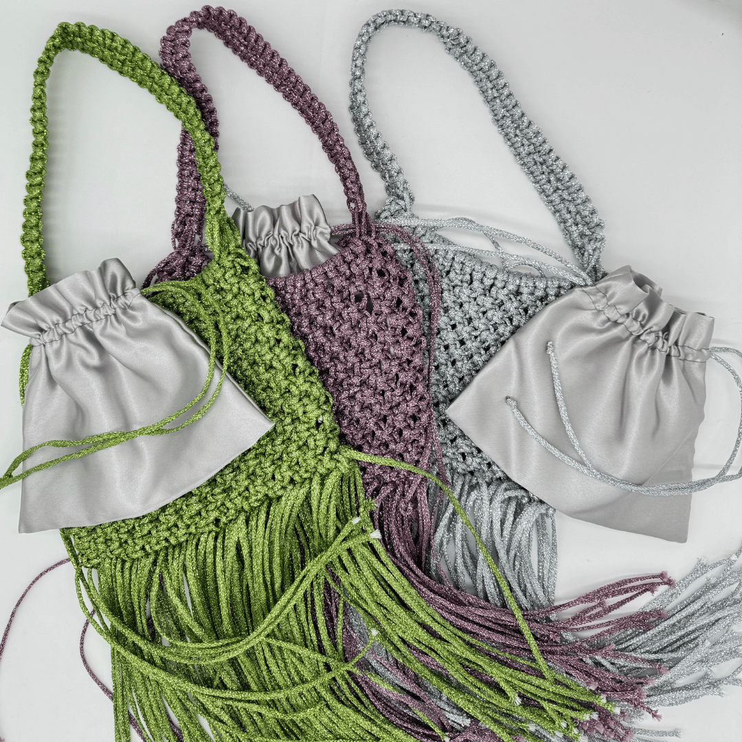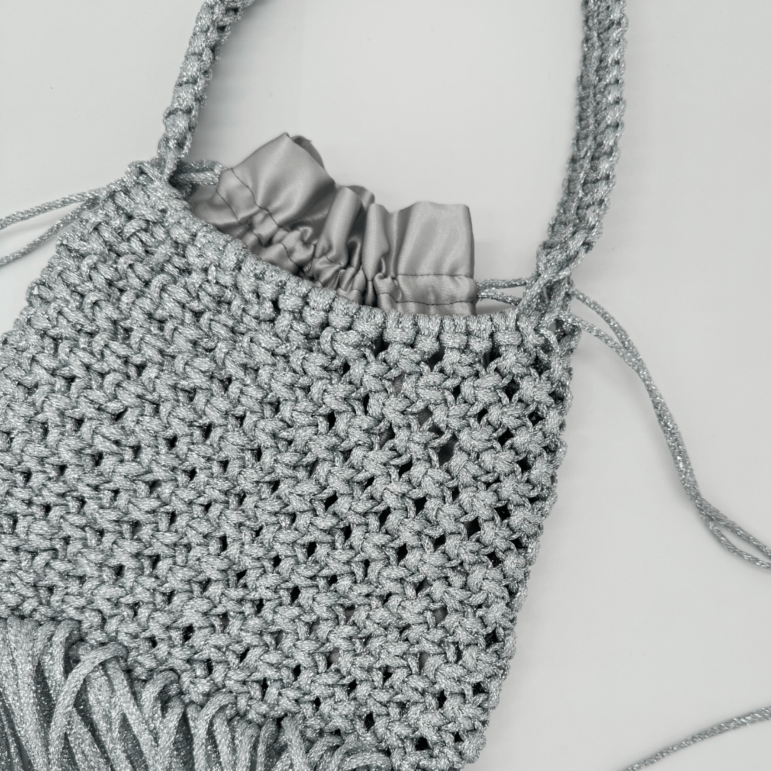 Senti la brezza estiva con questa borsetta incantata, dove la corda scintillante danza con maestria nella tecnica del macramé.
