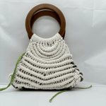 Il manico rotondo in legno completa l'atmosfera naturale e estiva di questa borsa.