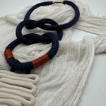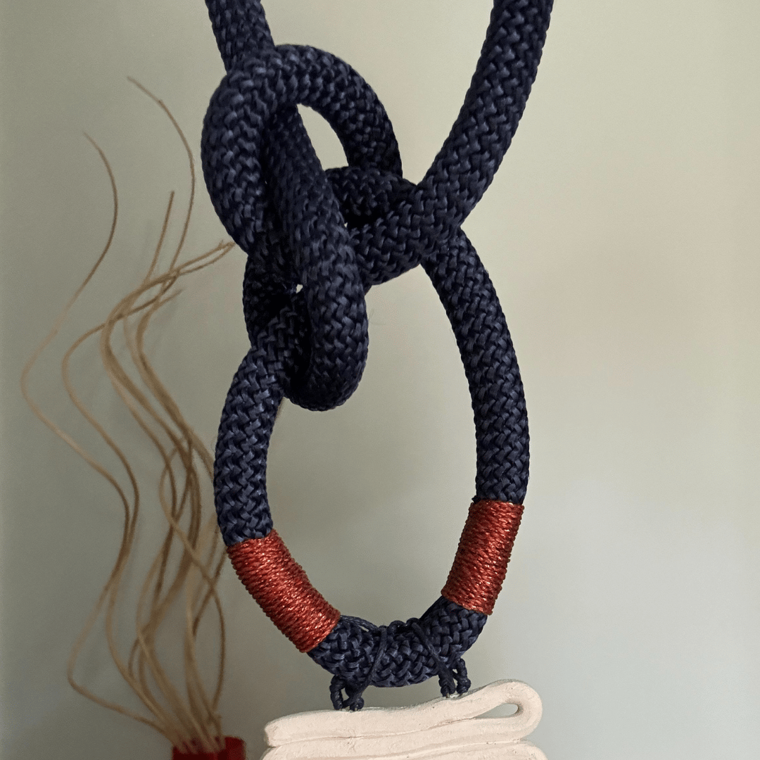 Cordone: Blu, arricchito con fili decorativi color arancio per un effetto vivace