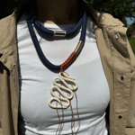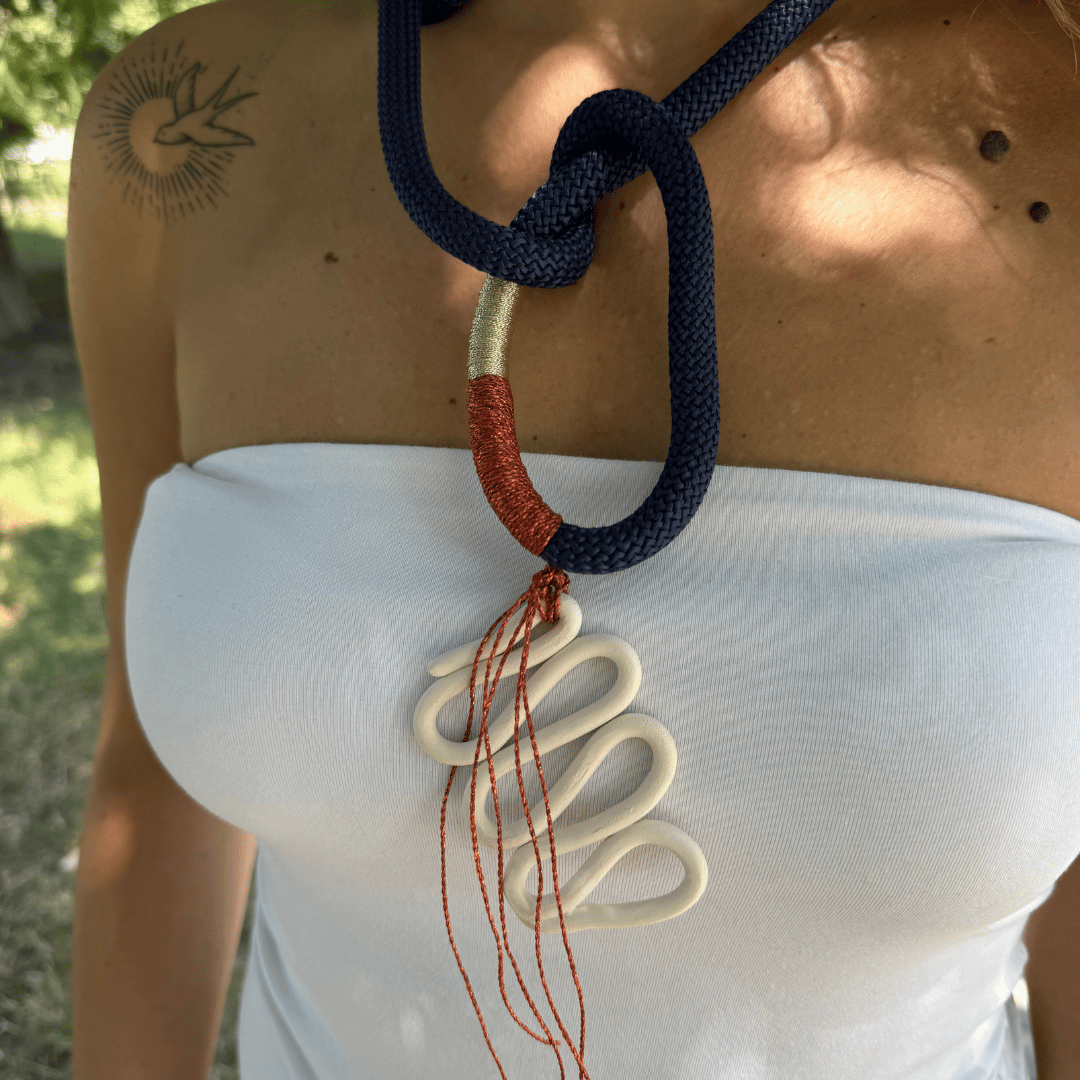 Il ciondolo, realizzato in ceramica bianca, si distingue per la sua forma sinuosa che aggiunge un tocco di raffinatezza e originalità.