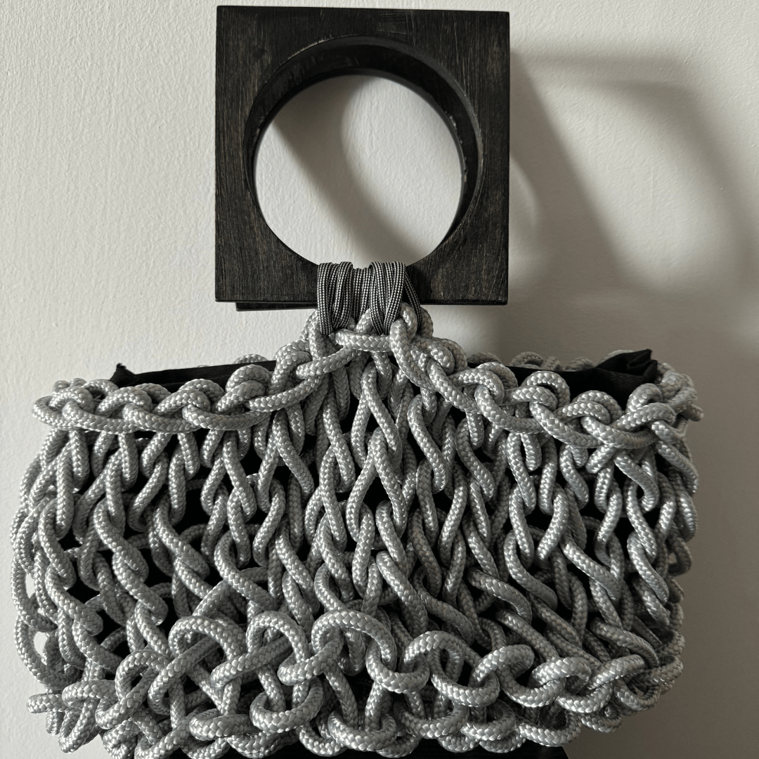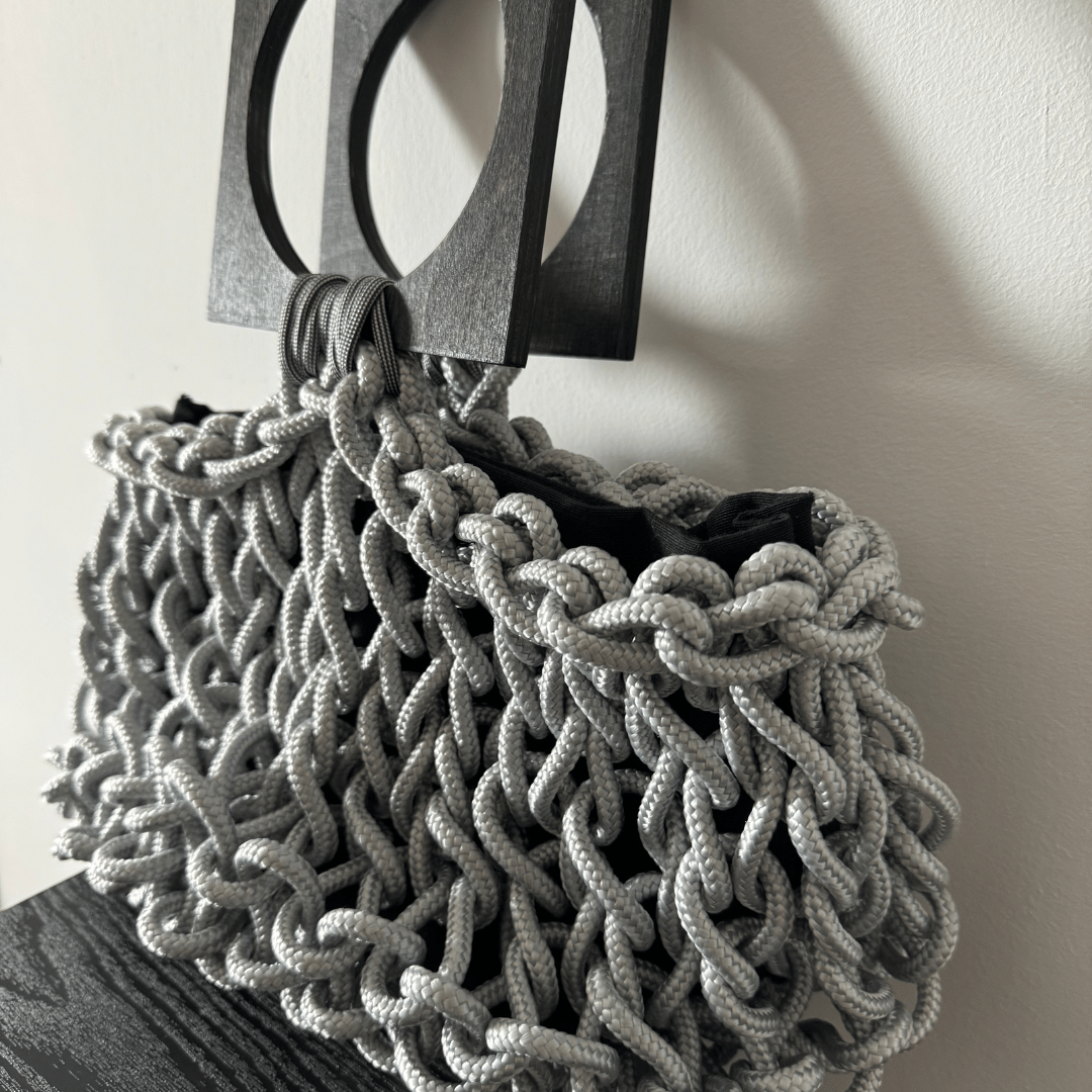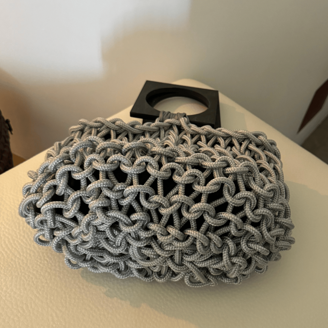 Borsa artigianale in corda riciclata dal design unico.