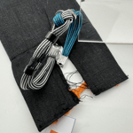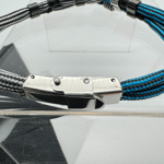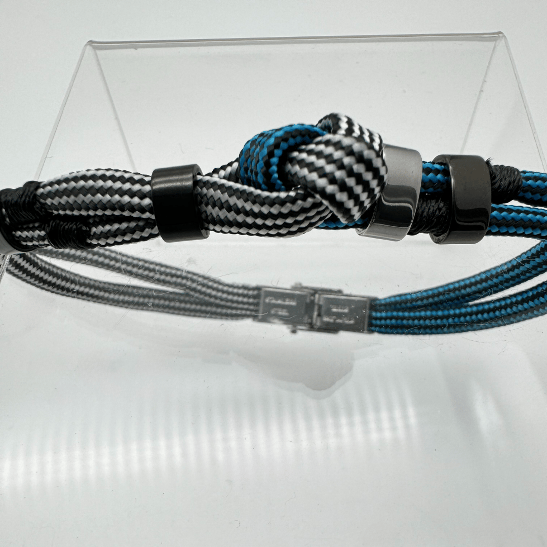Braccialetto con nodo centrale e inserti in acciaio neri e grigi argento.
