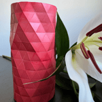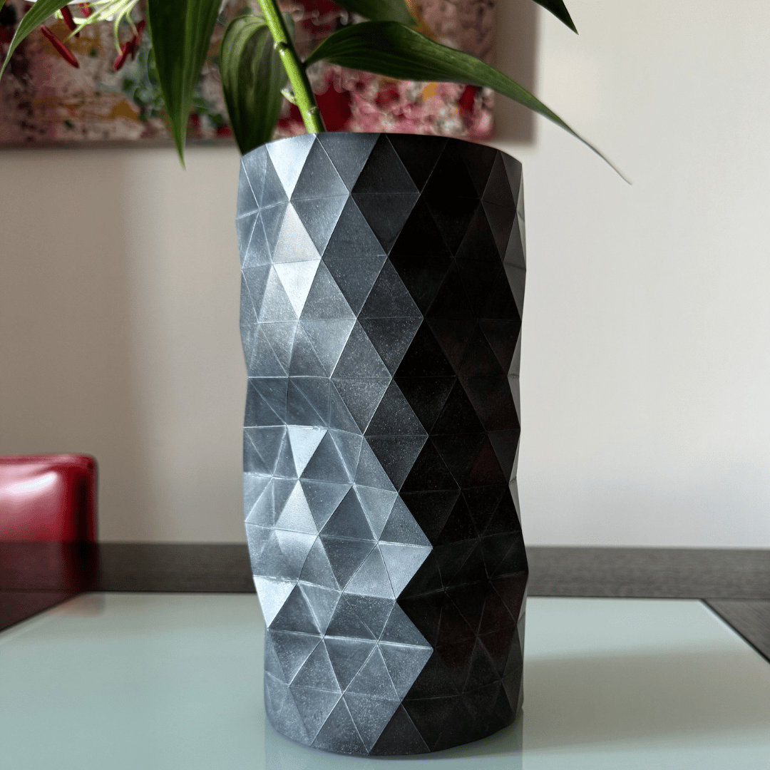 La forma tridimensionale di ciascun vaso viene costruita triangolo per triangolo, garantendo imperfezioni affascinanti e una struttura sempre diversa.